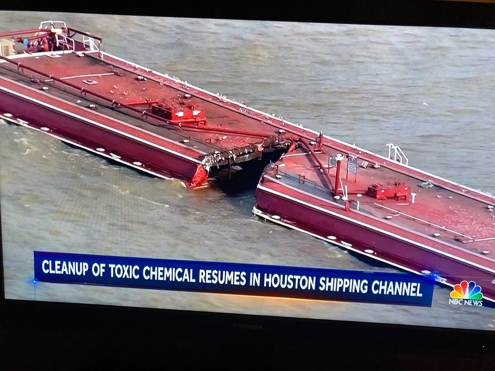 Look at this flooding in Sugar Land [a Houston suburb]. They saw 8 inches of rain in 4 hours. To give you perspective, the city saw the same amount of rain in 3 days during Harvey,” Maria Carter of ABC 13 tweeted.I watched these images on NBC's Sunday evening news as massive rains pounded the US south this weekend, again, complete with an oil products barge that spilled its load into the Houston shipping channel.